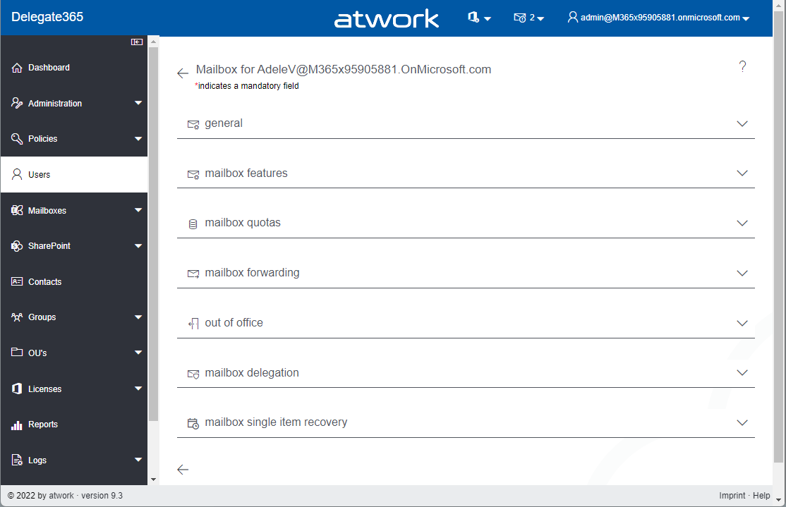 User / Mailbox performance: The content is only loaded when a section is opened. This speeds up the loading time for this module enormously.