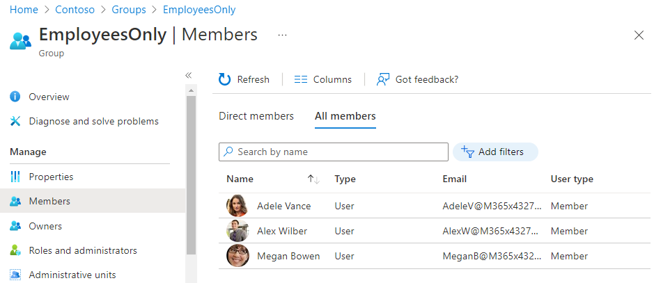 Note: When we set an EmployeeId for user Diego, this usually takes about two minutes (depending on the tenant size and the rules), that the user shows up as a member in the Dynamic Group. Also, the SharePoint site may need additional time to receive the new member. Diego can sign out and sign-in again and retry. So if access doesn’t work, be patient and try again a little later.