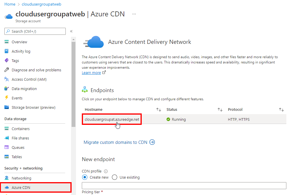 In this sample, we have a community website www.cloudusergroup.at running in Azure. You can find out how to create and to deploy a static website on an Azure Storage Account at Static website hosting in Azure Storage and a tutorial at Tutorial: Host a static website on Blob Storage. In this case, the website has a custom domain bound to the website with Azure CDN, see more at Quickstart: Integrate an Azure Storage account with Azure CDN.