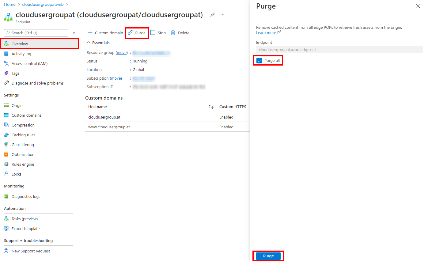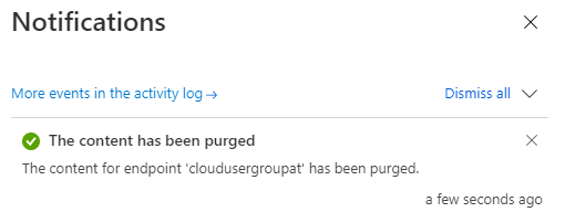 This process usually takes about one to two minutes. The notifications show the success of the purge operation.