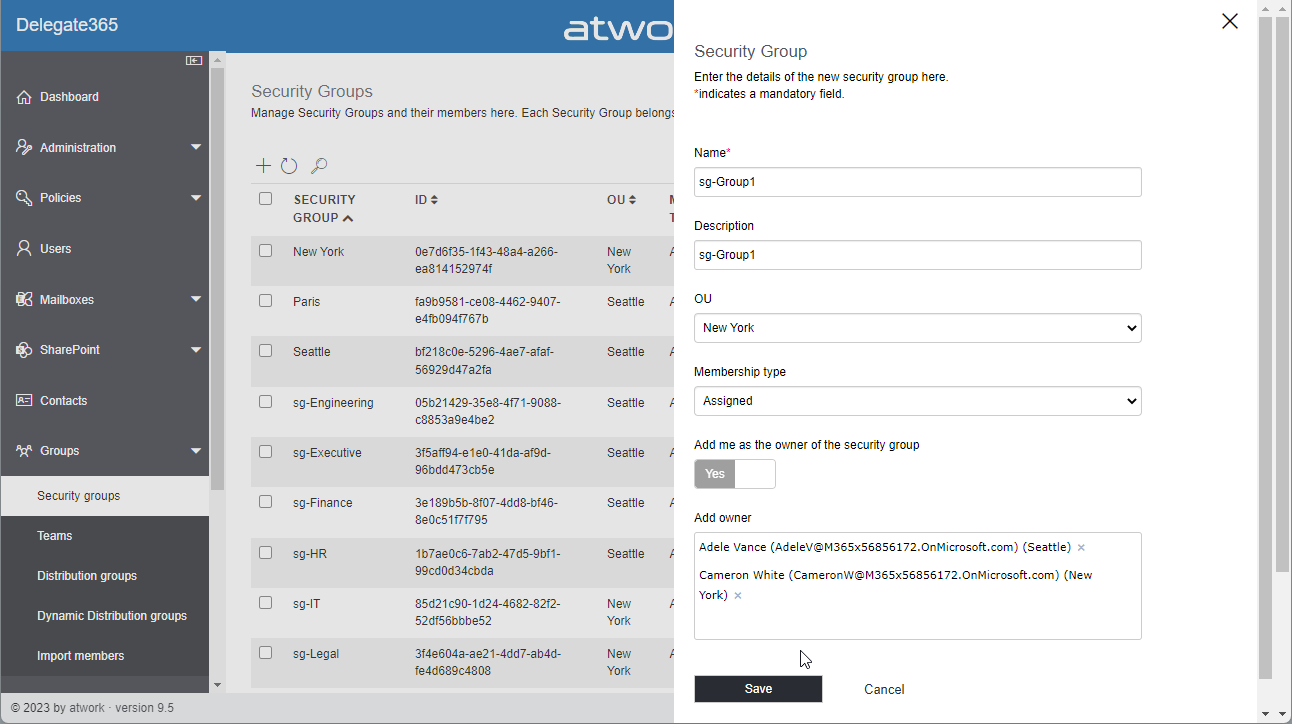 Delegate365 v9.5 brings some improvements for importing users from a list into groups, adding owners to groups, showing user authentication methods and some other benefits. See it here.