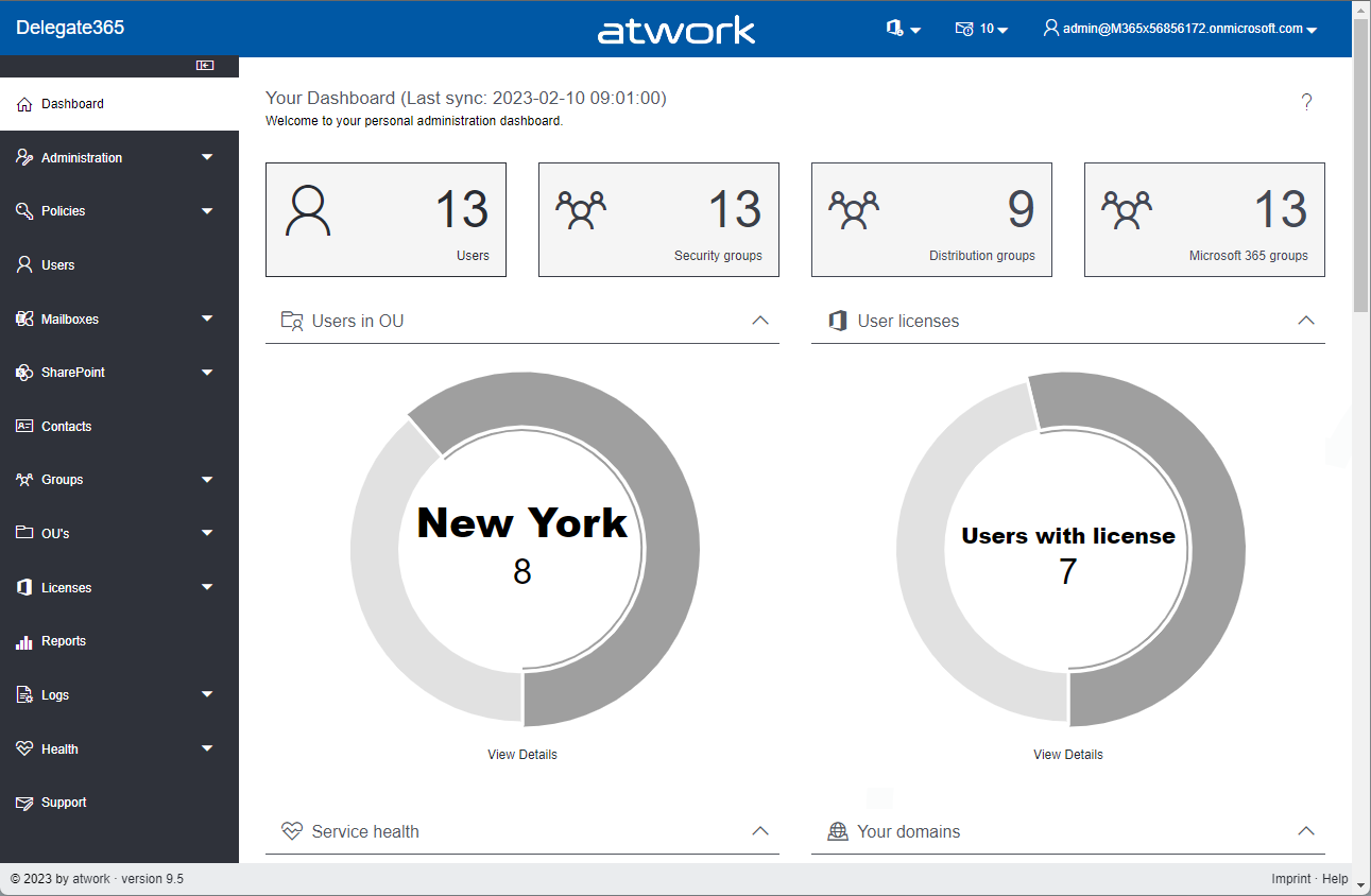 Optimization of Exchange operations in the UI: Unfortunately, some Exchange operations are time-consuming. In order to achieve a better user experience, we have broken down some functions in the frontend and now serve them with own backend tasks. This leads to a better use of Exchange operations in the frontend, like in Distribution Groups, Mailbox settings, and other functions against Exchange Online.