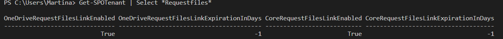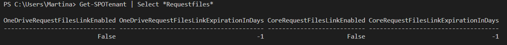 The first step is to check if the settings is enabled in your Tenant. For that, please connect to the SharePoint Online PowerShell Module. After you are connected you can check, if Request Files is enabled with the following command: