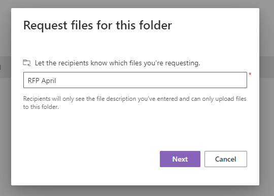 Another use case might be out of compliance: You are requesting RFI’s from different potential partners or vendors and you want to collect them in a central location. The people who upload files can only upload files; they cannot see the content of the folder, edit, delete, or download files, or even see who else has uploaded files.
