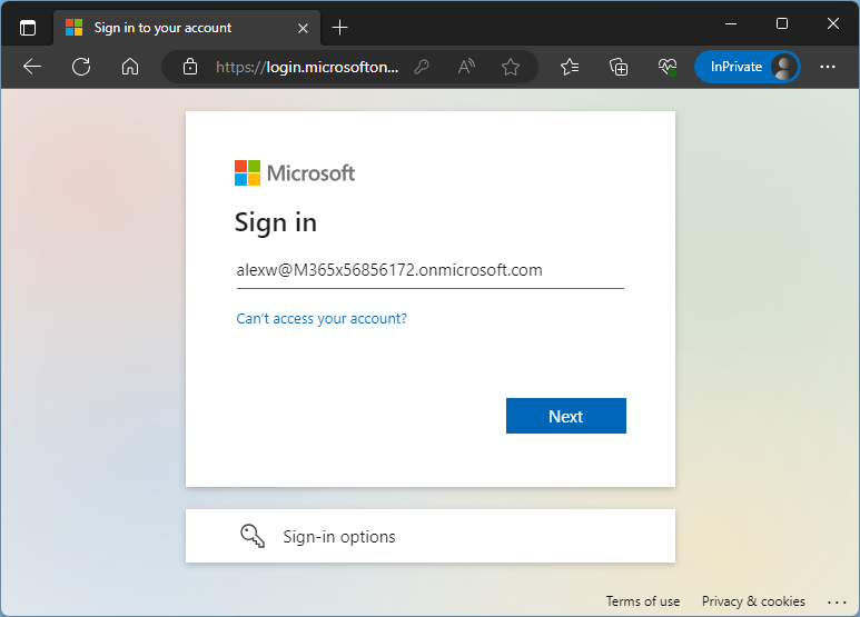 Now let´s try another user that is not allowed to use the web app. We sign-in with user Alex.