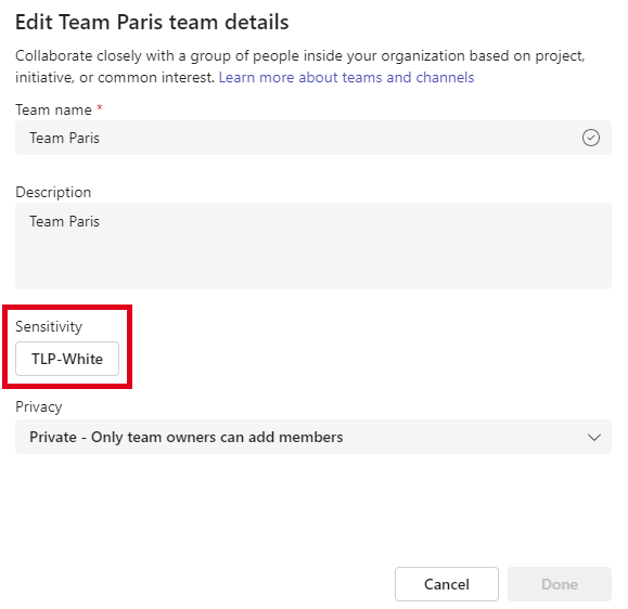 In Microsoft Teams, sensitivity labels can be assigned in the Team´s Settings.