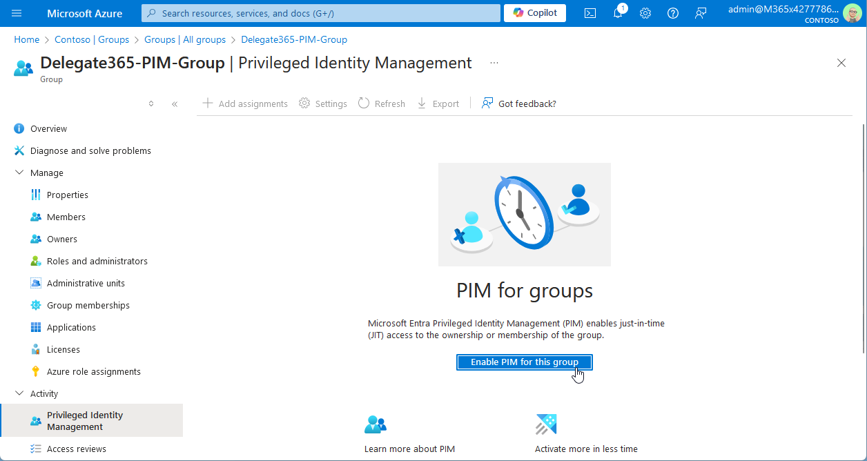 This article provides a guide on configuring PIM for Delegate365. You can find out details about PIM at What is Microsoft Entra Privileged Identity Management?