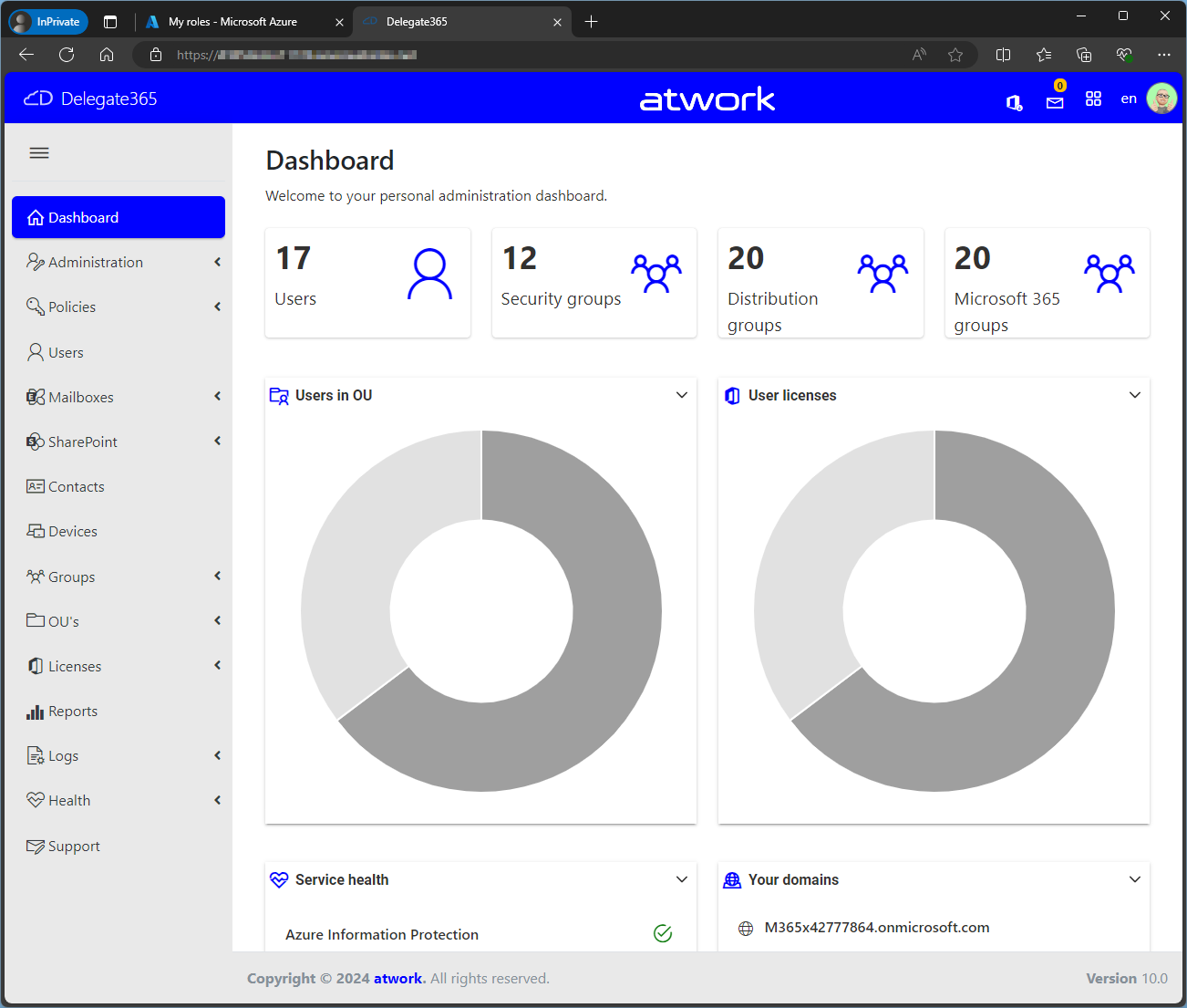 Now open another browser tab, and open the Delegate365 URL. With activated PIM, the Delegate365 portal opens and grants access to it´s functions.